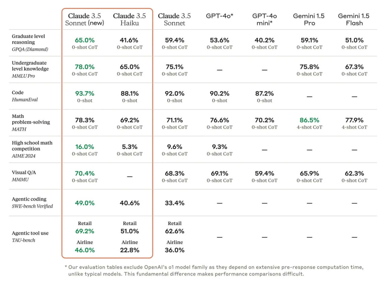- Кодирование (Code HumanEval): нейросеть показывает один из самых впечатляющих результатов в программировании — 93.7% (0-shot), что выше, чем у GPT-4o (90.2%). Это подтверждает заявления о продвинутых возможностях модели в разработке ПО.