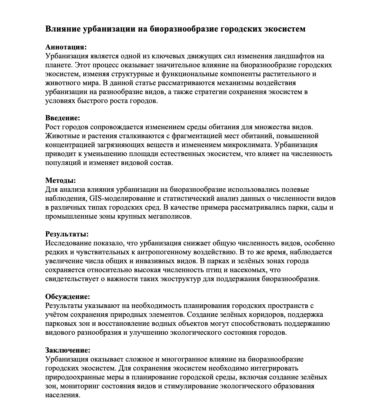 Промпт: «Прочитай текст научной статьи и составь краткое резюме. Выдели основные выводы. Также отметь ключевые аргументы и важные детали. Это нужно, чтобы быстро ознакомиться с содержанием».
