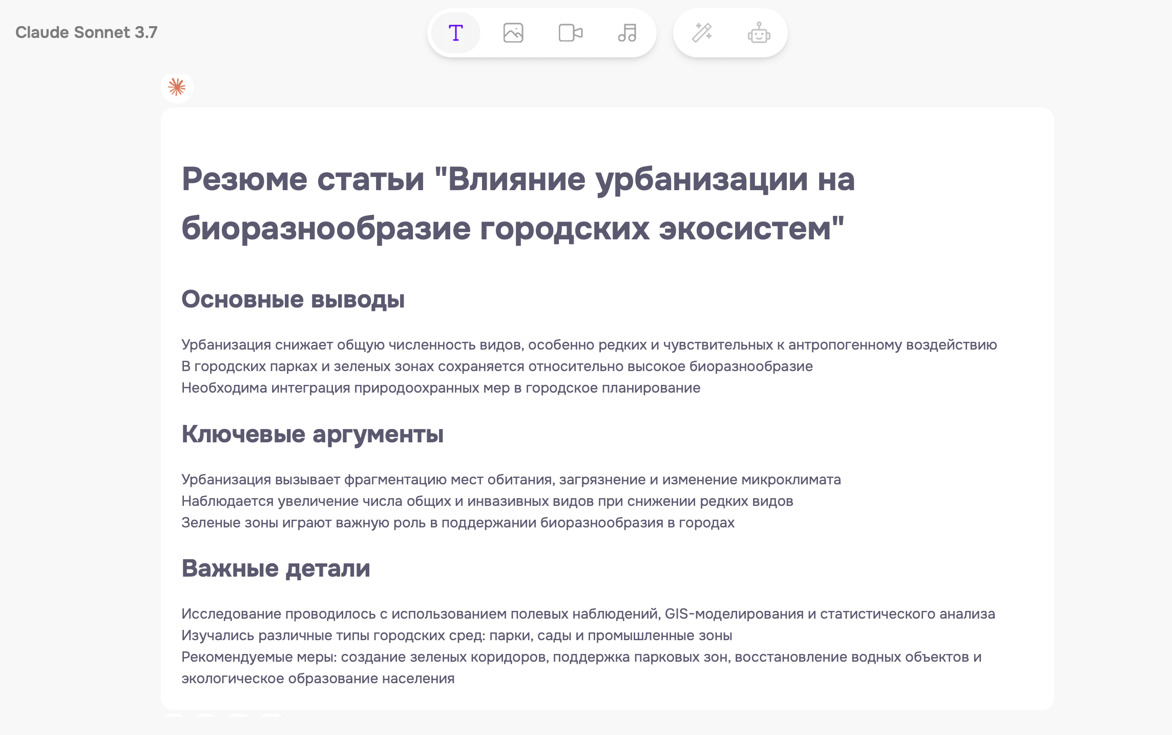 Эффект внедрения: ии-модель структурирует длинный текст, выделяет ключевые идеи и формирует компактное резюме. В результате пользователь экономит время на чтение. Он быстрее усваивает материал и может сразу использовать выводы в учебе.