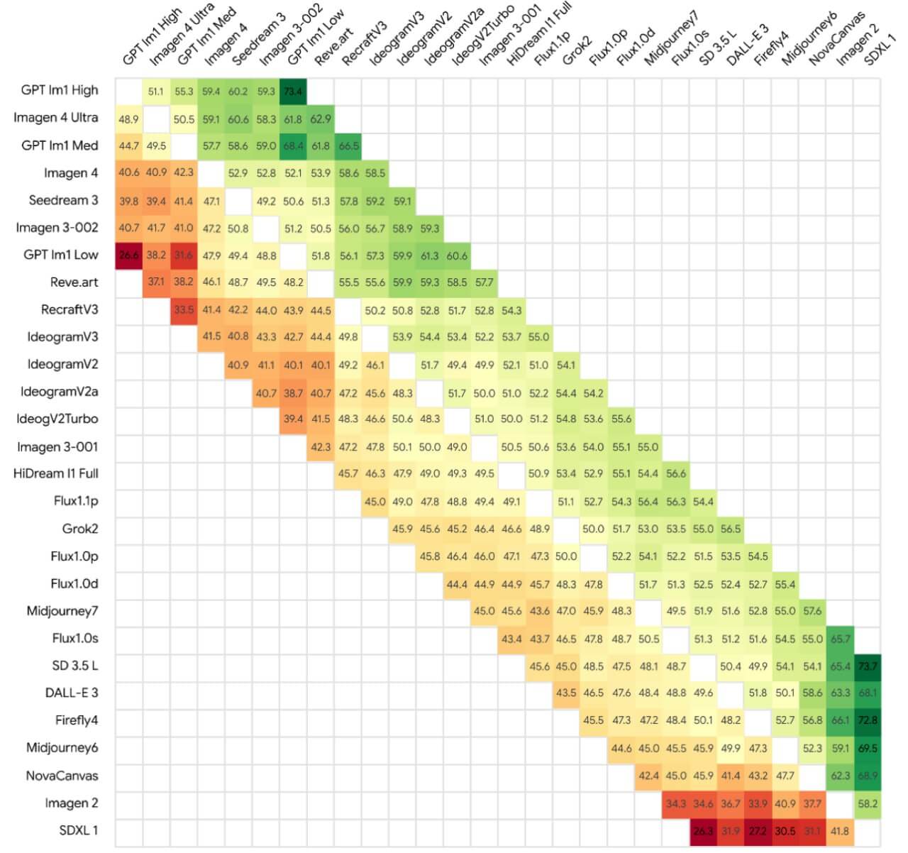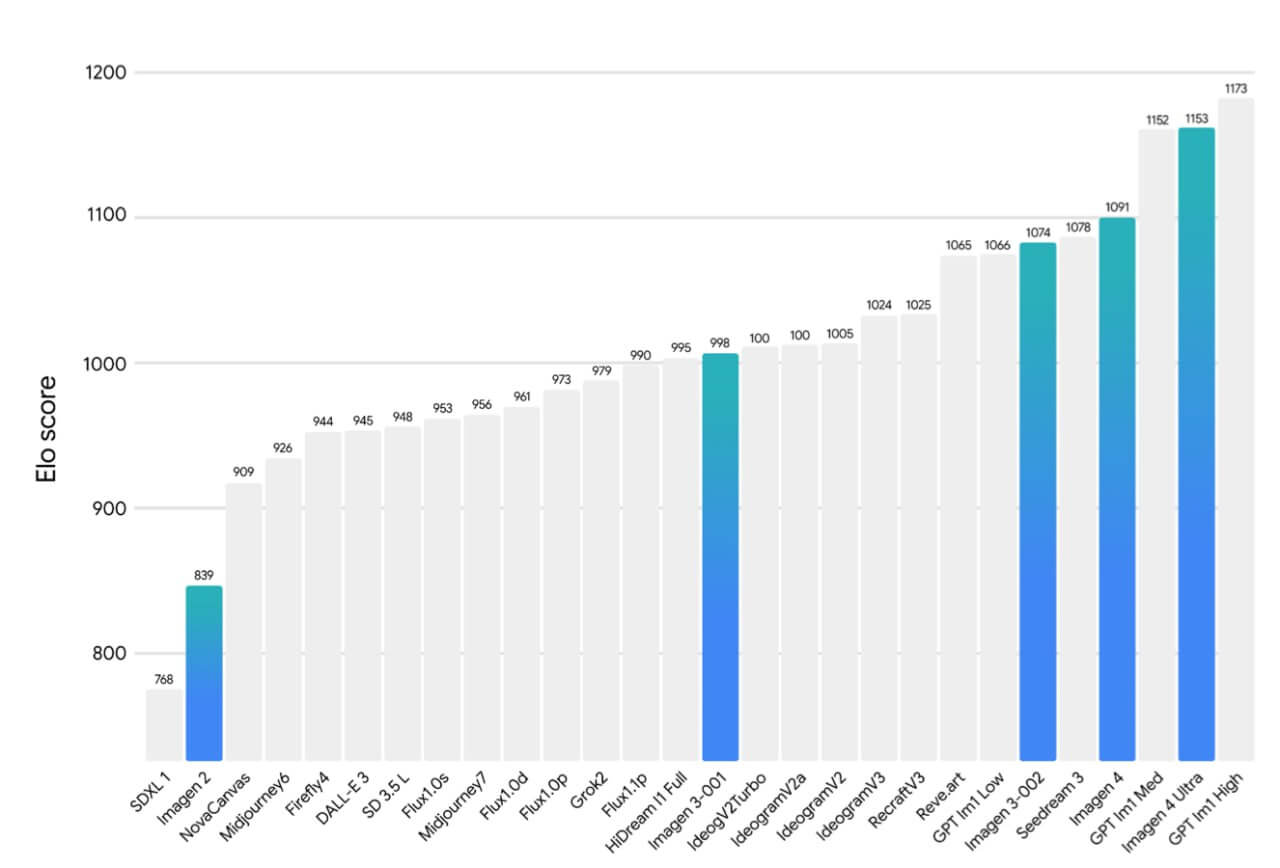 Оценка качества: Imagen 4 в лидерах по Elo-счёту