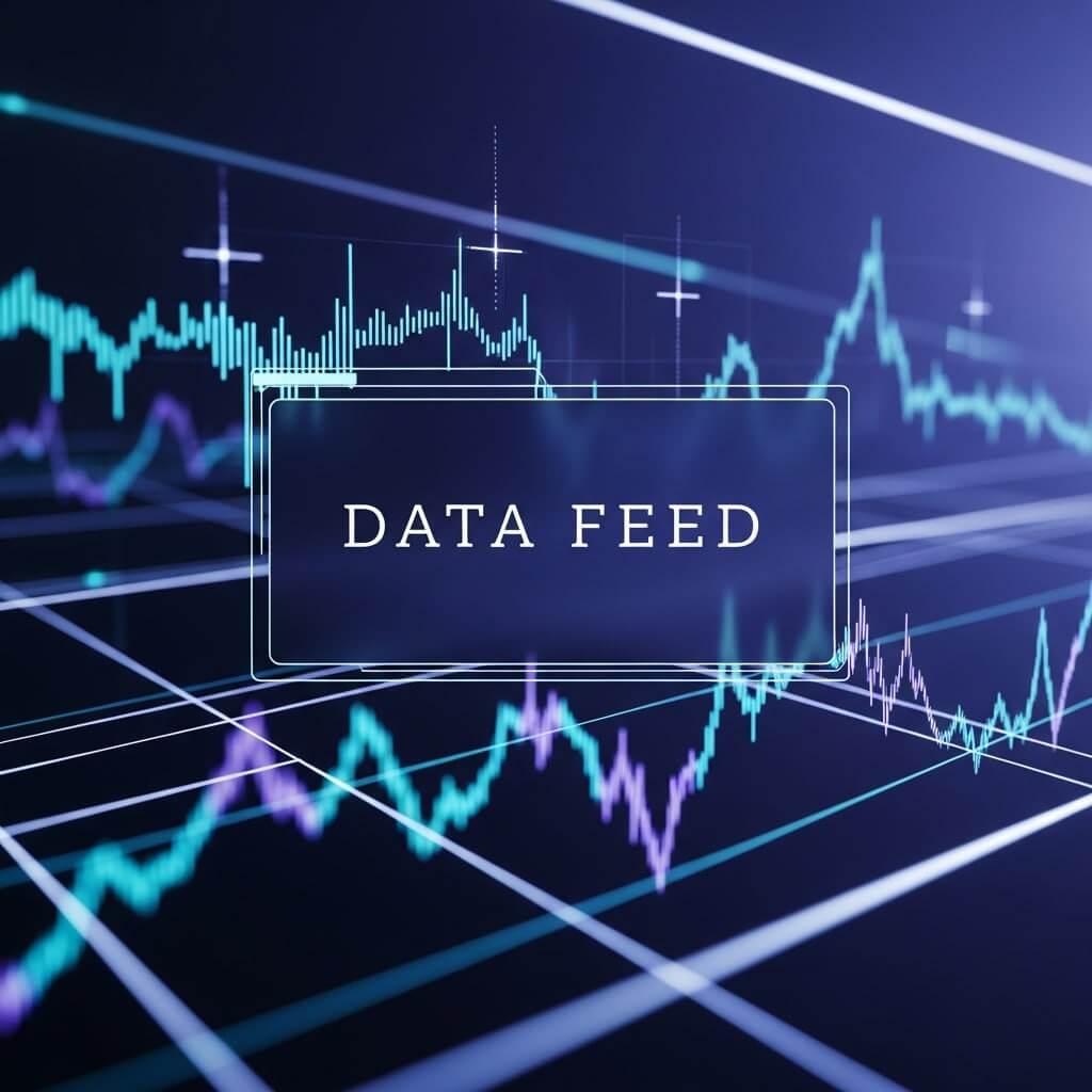 Промпт: «Абстрактный цифровой интерфейс с голографическими линиями и полупрозрачными графиками данных на тёмном фоне. В центре должно быть окно с надписью „DATA FEED” белым моноширинным шрифтом. Визуал должен быть чистым, с преобладанием голубого и фиолетового цветов. Создайте атмосферу высоких технологий. Изображение в формате 4:3.»