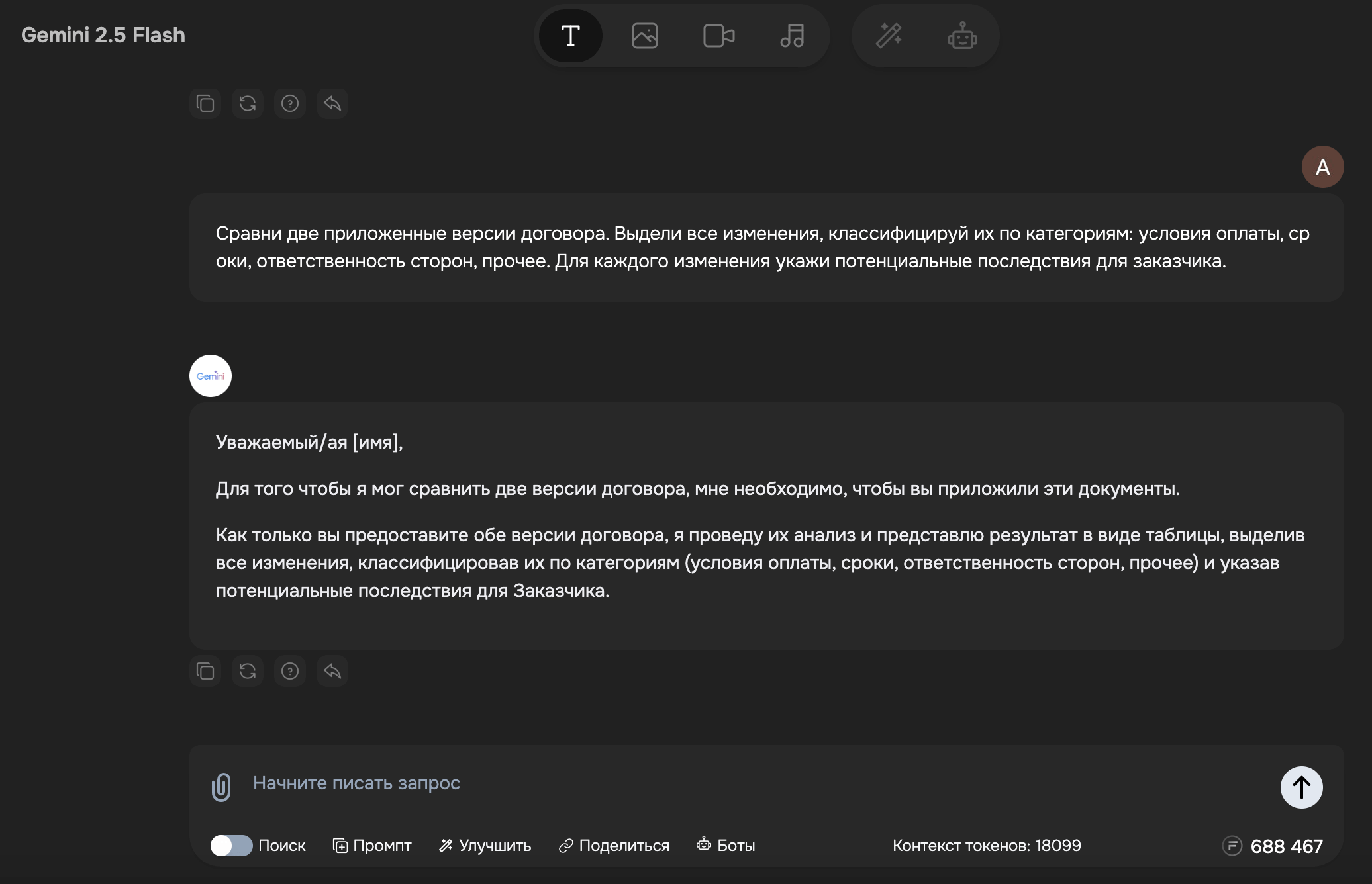 Минус — скорость обработки ниже, чем у ChatGPT. Анализ объёмного документа занимает 5–7 минут против 2–3 у конкурента. Зато качество проработки деталей компенсирует ожидание.