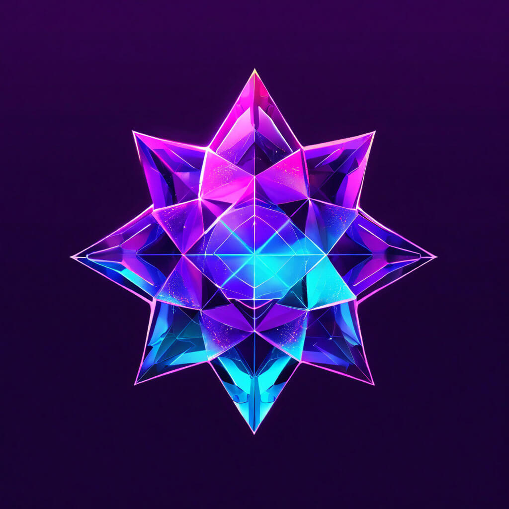 Промпт для модели: "Абстрактный знак: сияющий многогранник внутри планетарного кольца. Цвета: тёмно-фиолетовый, а также ярко-бирюзовый. Стиль: векторный логотип, минимализм, а также футуризм."