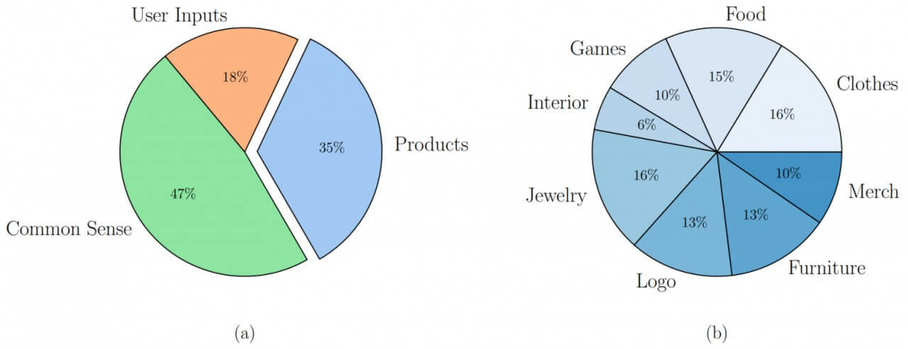 Предоставленное изображение содержит два круговых графика. Они отражают структуру обучающего датасета для ИИ-модели. Данный анализ показывает приоритеты нейросети в генерации контента.